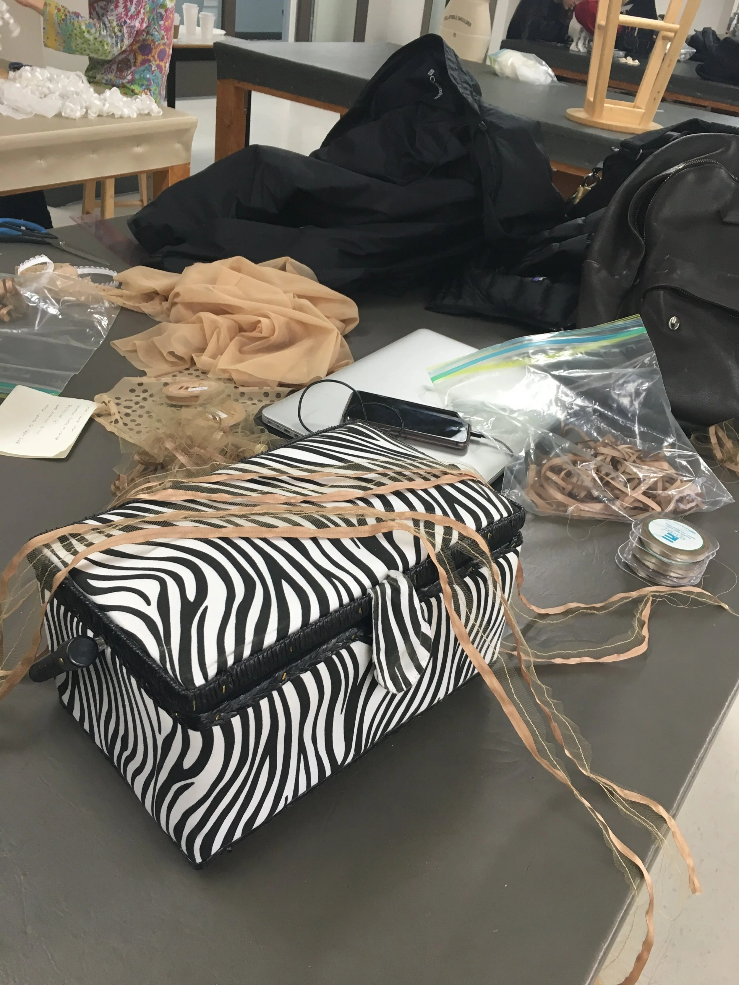 For this production, I took on the role of wing-maker. Both plays are set during the French Baroque period and draw heavily from the commedia dell’arte tradition. Costume Designer Karyn McCallum wanted to stay true to the extravagance of the time. The costumes for this production were incredibly detailed, with my entire class solely in charge of the wigs.